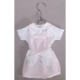 salopette in filo con fiocco ricamato sul davanti, t-shirt in cotone, pappa e latte